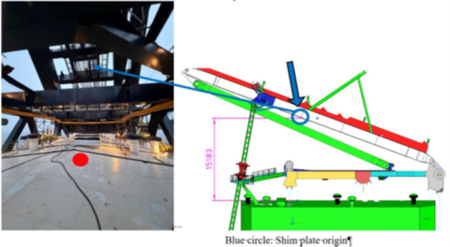 There was a thorough inspection of subsequent securing of all shim plates on both crane A-frames.